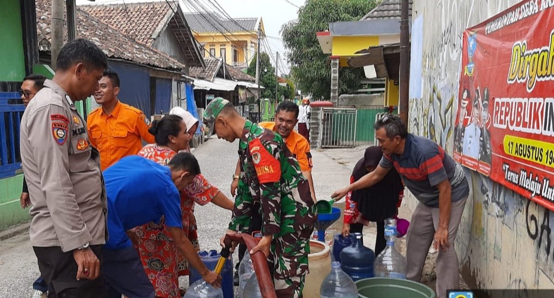 GERBANGPATRIOT.COM – Serang, Bintara Pembina Desa (Babinsa) Koramil 0602-18/Kragilan Kodim 0602/Serang Sersan Satu (Sertu) Ahdi Sutisna, membantu Pemerintah Daerah Kabupaten Serang melalui Badan Penanggulangan Bencana Daerah (BPBD) , menyalurkan bantuan Air bersih kepada masyarakat yang terdampak kekeringan, akibat kemarau karena fenomena El Nino, Bertempat di Kampung Cisereh Desa Kragilan Kecamatan Kragilan Kabupaten Serang Provinsi Banten, Selasa Kemarin (19/09/2023).