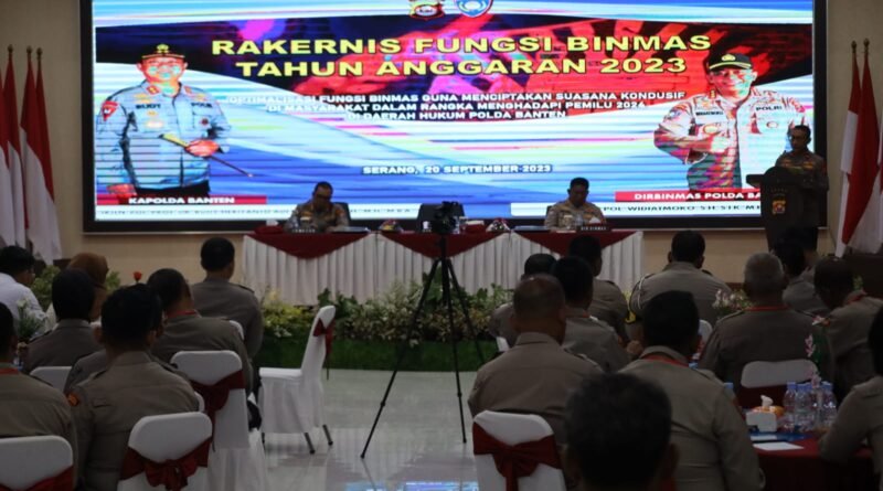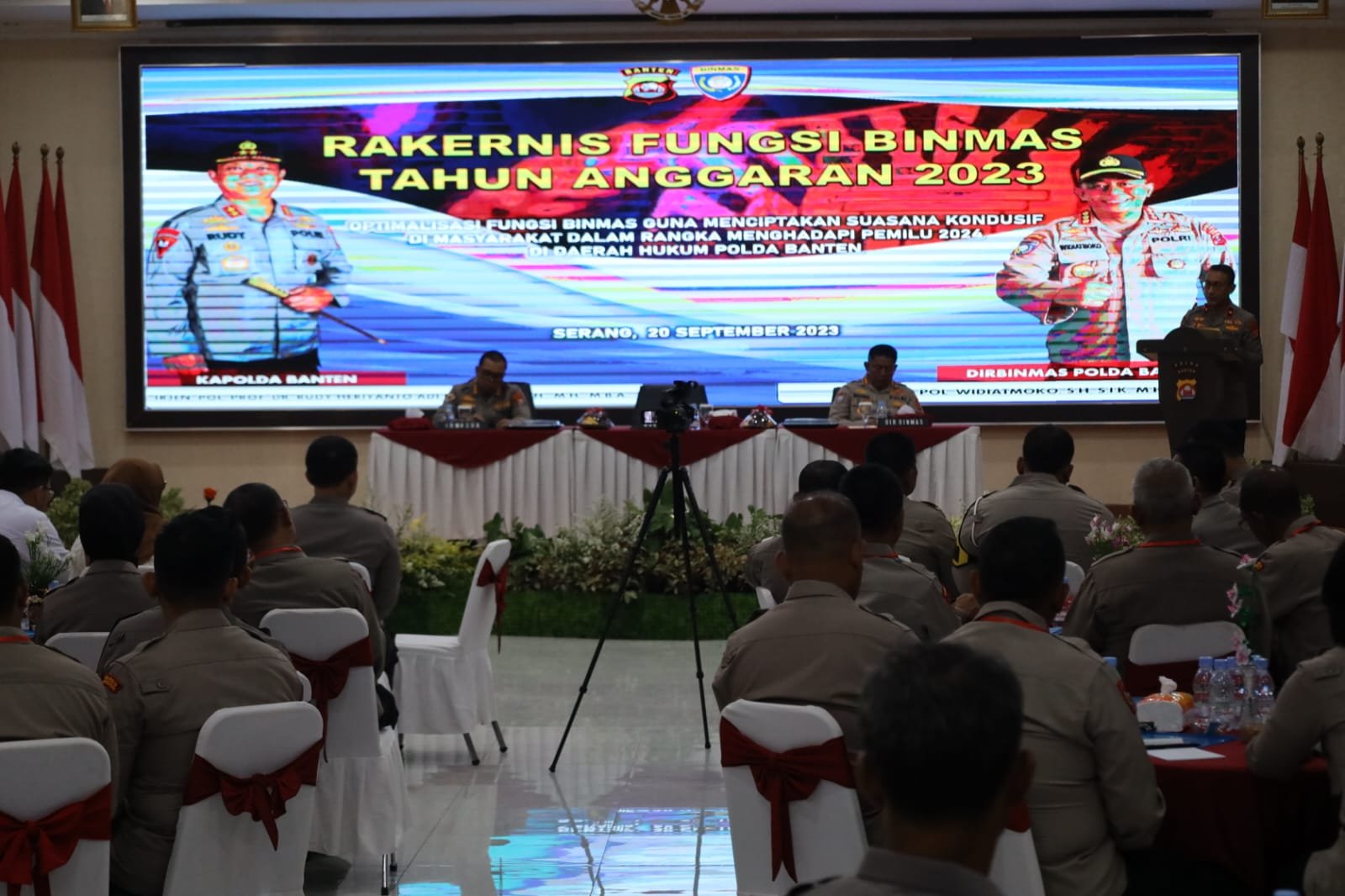 Rakernis yang bertemakan Optimalisasi Fungsi Binmas Guna Menciptakan Suasana Kondusif di Masyarakat Dalam Rangka Menghadapi Pemilu 2024 di Daerah Hukum Polda Banten di ikuti oleh 130 peserta dari Ditbinmas Polda Banten dan Polres jajaran yang di buka oleh Wakapolda Banten Brigjen Pol. M. Sabilul Alif dihadiri oleh Irwasda Polda Banten Kombes Pol Eko Kristianto serta seluruh Pejabat Utama Polda Banten