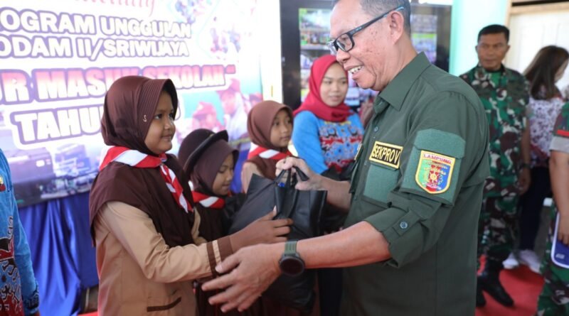 Sekdaprov Fahrizal dan Danrem 043/Gatam Brigjen TNI Iwan Ma’ruf Zainudin Ikuti Launching “Program Dapur Masuk Sekolah” yang Dilakukan Pangdam II/Sriwijaya Mayjen TNI Yanuar Adil