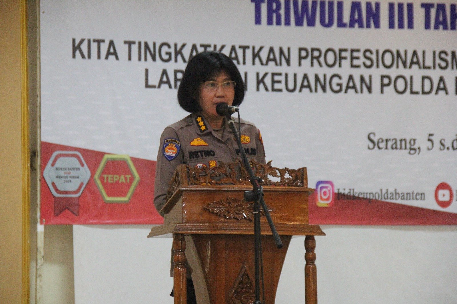 Kepala Bidang Keuangan (Kabidkeu) Polda Banten Kombes Pol Retno Dwiyanti dalam sambutanya mengatakan bahwa kegiatan mengambil tema kita tingkatkan Profesionalisme dan Akuntabilitas. “Kegiatan penyusunan dan penyajian laporan keuangan periode Triwulan III tahun anggaran 2023 mengambil tema Kita tingkatkan Profesionalisme dan Akuntabilitas guna terwujudnya laporan keuangan Polda Banten yang lebih berkualitas,” kata Retno