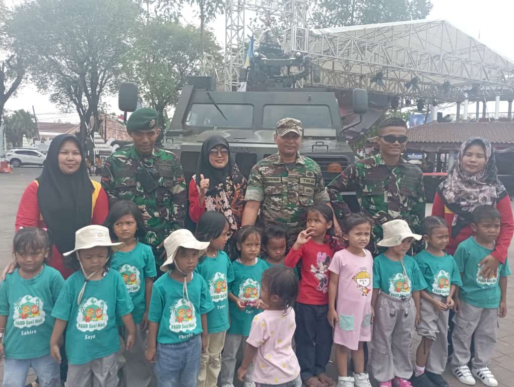 Sebelum berfoto anggota TNI juga menjelaskan kepada masyarakat jenis kendaraan tempur dan kegunaan senjatanya. DIRGAHAYU TNI KE- 78. Tutup Eros.(Wan)