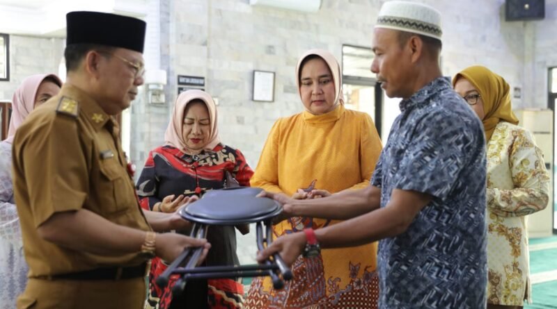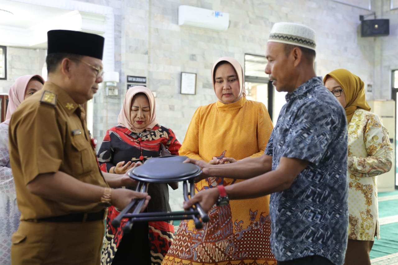 Ibu Riana Sari Arinal Beri Bantuan Pelengkapan Ibadah Shalat Berupa Kursi Lipat untuk Masjid Agung Kotabumi