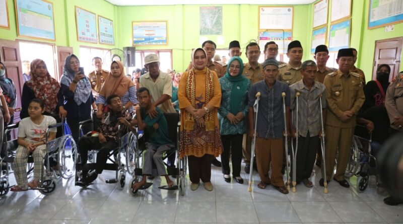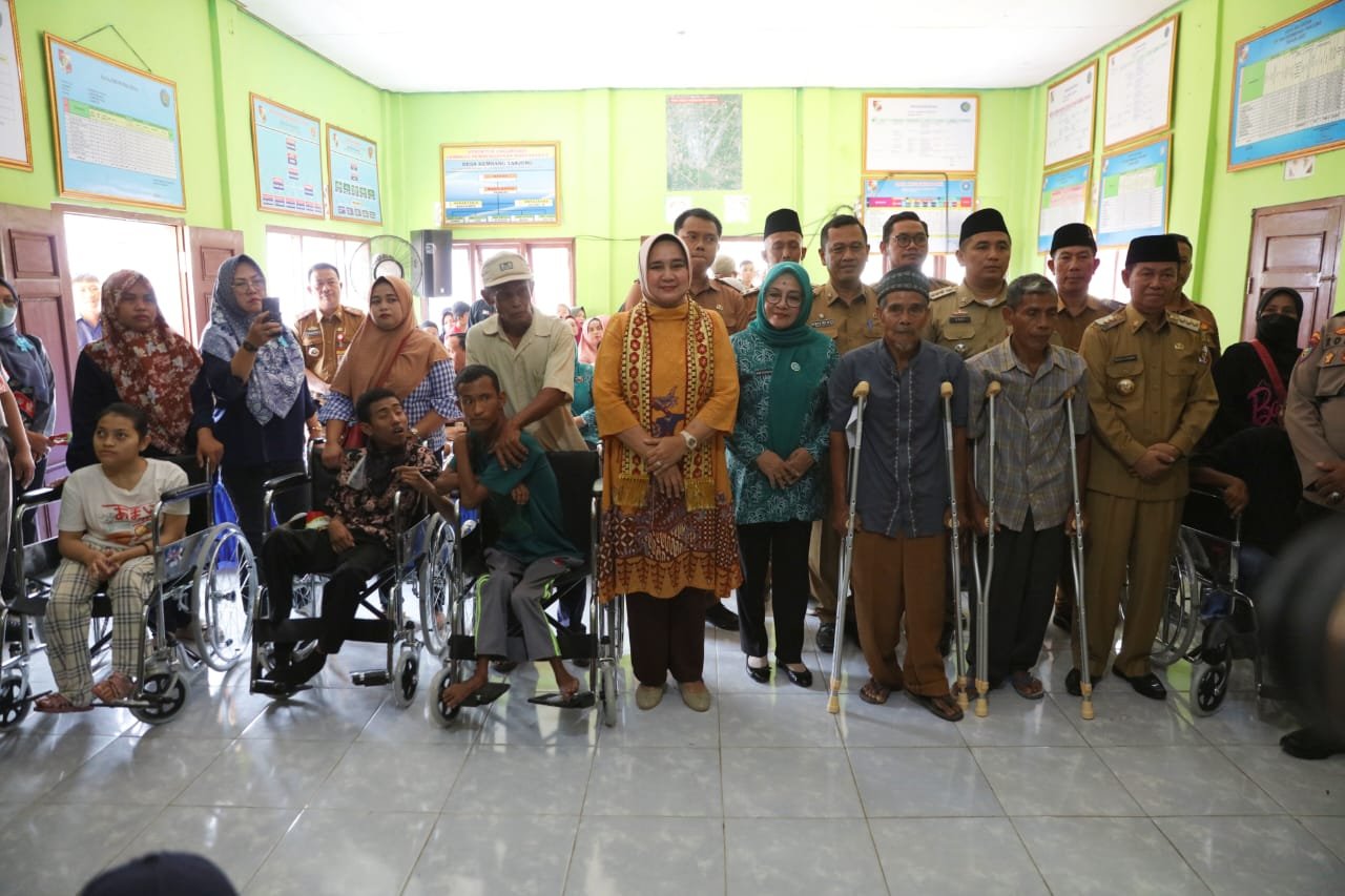 Dalam kesempatan itu, Ibu Riana didampingi Bupati Lampung Utara Budi Utomo secara simbolis menyerahkan bantuan alat bantu jalan kursi roda dan tongkat kruk kepada penyandang disabilitas.(Wan)