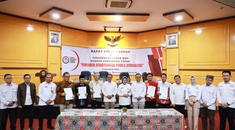 Hal itu diungkapkan Penjabat (Pj) Sekda Provinsi Banten Virgojanti saat acara Rapat Kerja Daerah dan Penandatanganan Memorandum of Understanding (MoU) dengan Perguruan Tinggi yang mengusung tema “Penyiaran Berintegritas Pemilu berkualitas” di Aula Bappeda, KP3B, Kota Serang, Rabu (11/10/2023).