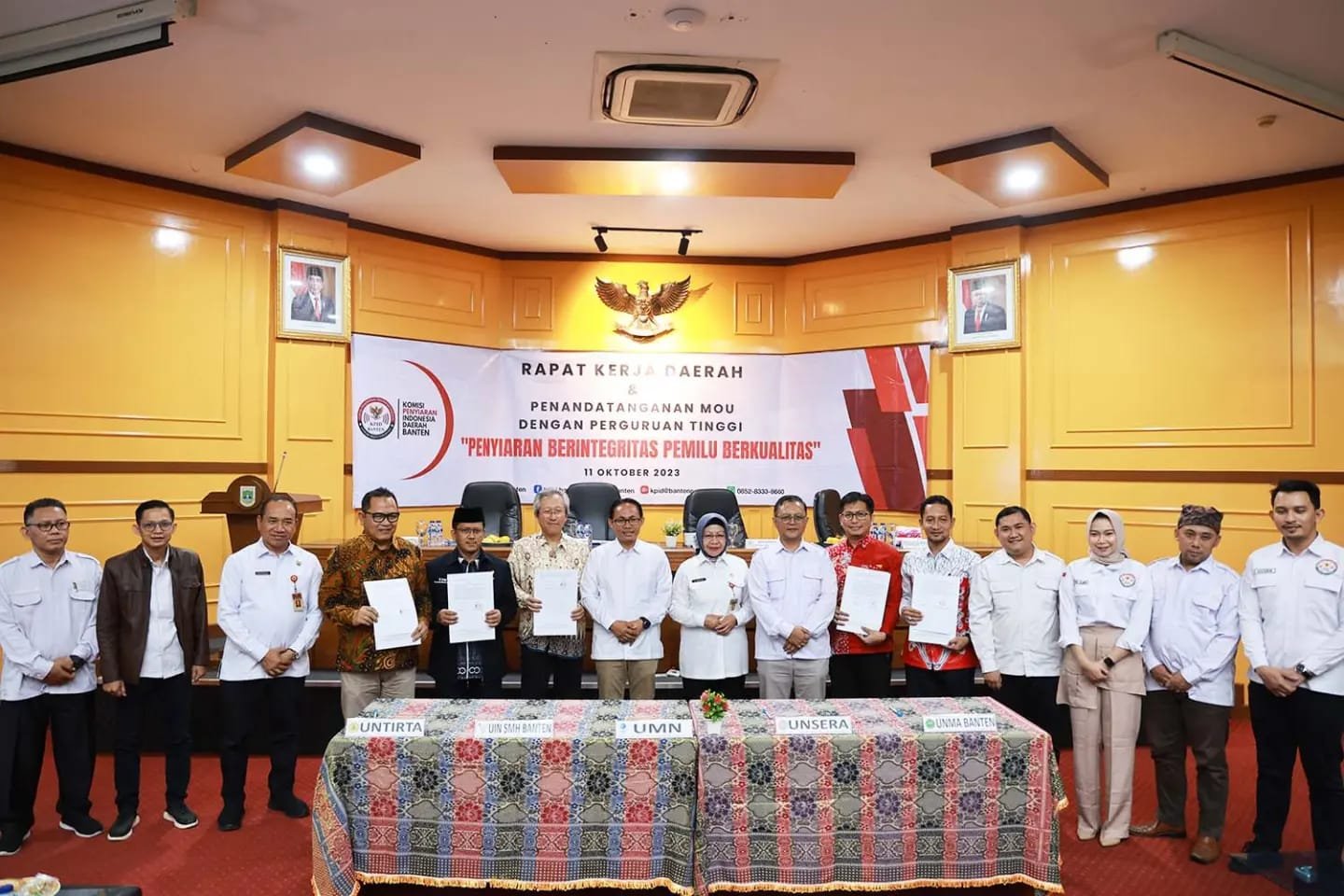 Hal itu diungkapkan Penjabat (Pj) Sekda Provinsi Banten Virgojanti saat acara Rapat Kerja Daerah dan Penandatanganan Memorandum of Understanding (MoU) dengan Perguruan Tinggi yang mengusung tema “Penyiaran Berintegritas Pemilu berkualitas” di Aula Bappeda, KP3B, Kota Serang, Rabu (11/10/2023).