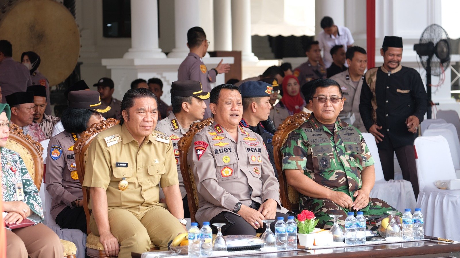 Kegiatan dihadiri oleh Pj. Gubernur Banten Al Muktabar didampingi Kapolda Banten Irjen Pol Prof. Dr Rudy Heriyanto, Wakapolda Banten Brigjen Pol M. Sabilul Alif, seluruh Pejabat Utama Polda Banten, Danrem 064/Maulana Yusuf Brigjen TNI Tatang Subarna, Ketua DPRD Provinsi Banten Andra Soni, Kepala Badan Narkotika Nasional (BNN) Provinsi Banten, Drs. Rohmad Nursahid, Kapolres/ta Jajaran Polda Banten serta diikuti sekitar 700 personel Polda Banten dengan melibatkan personel dari berbagai satuan kerja khususnya Satbrimob dan Ditsamapta.