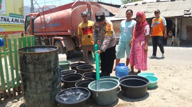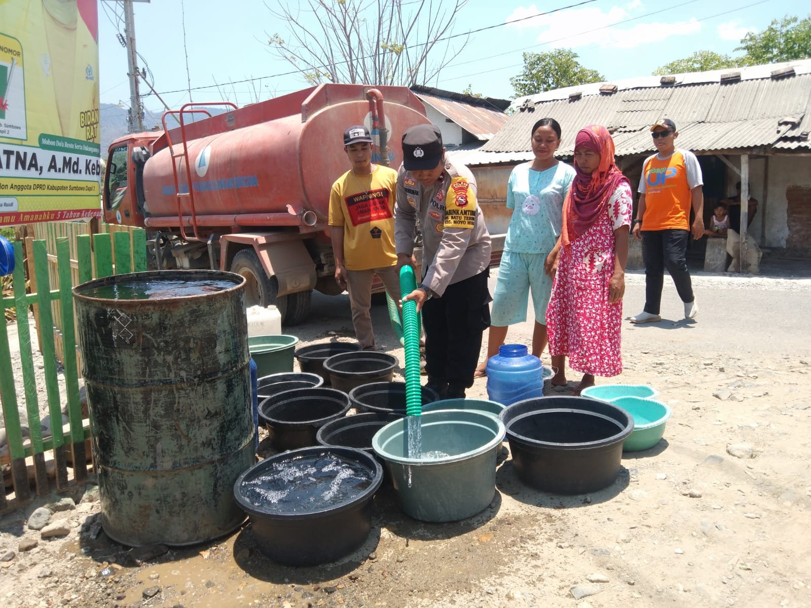 Dalam kegiatan itu Bhabinkamtibmas Desa Batu Tering Bripka Sudirman turun langsung mendampingi petugas dari BPBD Kabupaten Sumbawa dalam menyalurkan air sehingga dapat merata dan kegiatan penyaluran berjalan aman dan lancar
