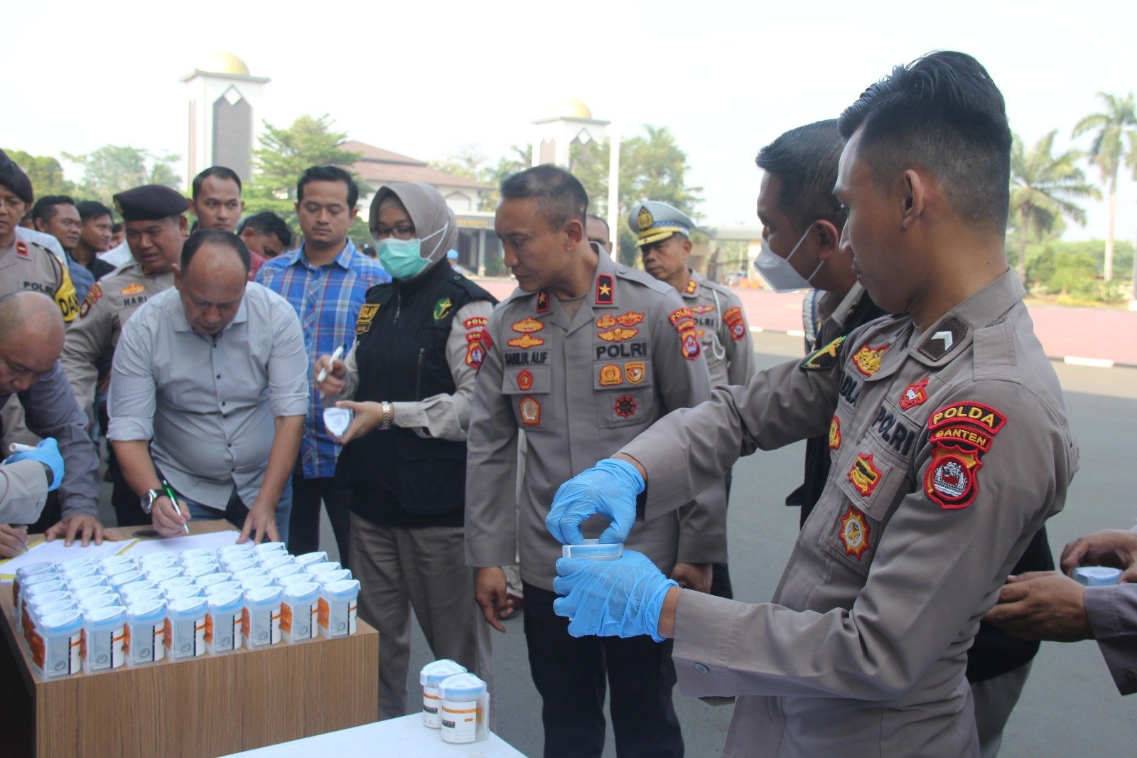Cek Kesiapan Personel Yang Terlibat Operasi Mantap Brata, Wakapolda Banten Laksanakan Tes Urin
