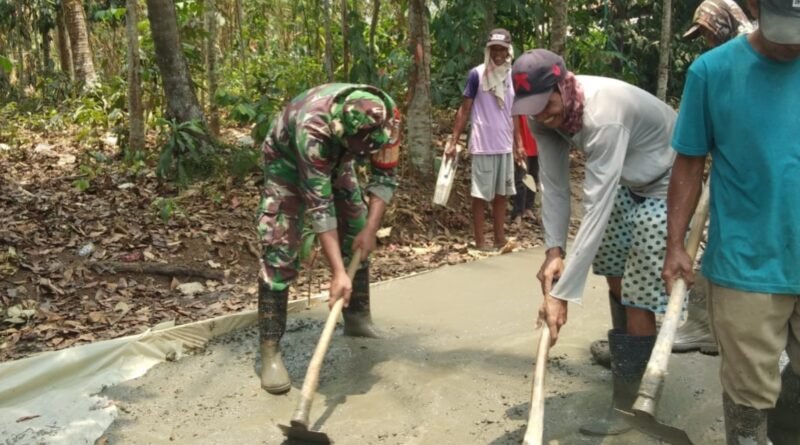Percepat Pembangunan, Babinsa Koramil 0602-08/Petir Bantu Warga Ngecor Jalan Desa