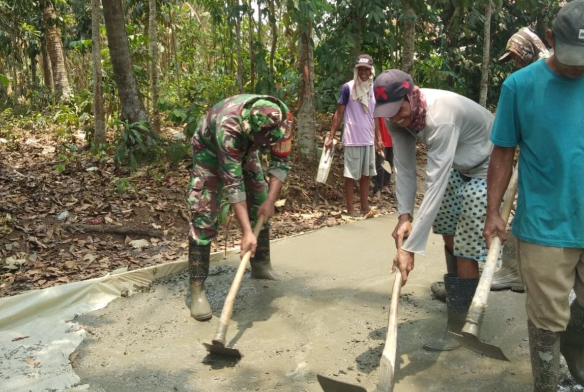 Percepat Pembangunan, Babinsa Koramil 0602-08/Petir Bantu Warga Ngecor Jalan Desa