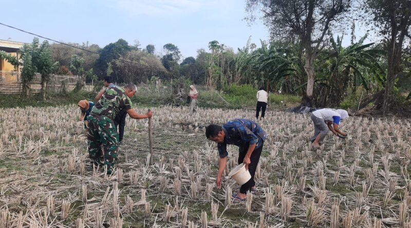 JAKARTA.GERBANGPATRIOT.COM – Serang, Menjaga Ketahanan Pangan, Sersan Satu (Sertu) Sabar Widodo Bintara Pembina Desa (Babinsa) Koramil 0602-17/Carenang Kodim 0602/Serang, membantu para petani menanam Kacang Kedelai seluas 1 (Satu) Hektar memanfaatkan areal lahan persawahan yang mengering akibat kemarau panjang, bertempat di Kampung Blok Satu Desa Warakas Kecamatan Binuang Kabupaten Serang Provinsi Banten, Jum’at (20/10/2023).