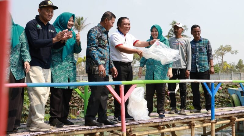 JAKARTA.GERBANGPATRIOT.COM – Banten, Penjabat Gubernur Banten Al Muktabar bersama Walikota Serang Syafrudin Tebar 1000 Benih Ikan Nila di Kolam Kebun Aku Hatinya PKK, Lingkungan Sepang Baru, Kelurahan Sepang, Kecamatan Taktakan, Kota Serang, Jum’at (20/10/2023). Kegiatan itu merupakan bagian dari Kampanye Gerakan Memasyarakatkan Makan Ikan (Gemarikan) Tim Penggerak Pemberdayaan Kesejahteraan Keluarga (TP PKK) Provinsi Banten dalam rangka pencegahan stunting.