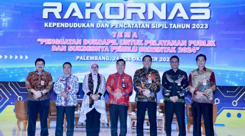 JAKARTA.GERBANGPATRIOT.COM – Palembang, Direktur Jenderal (Dirjen) Kependudukan dan Pencatatan Sipil (Dukcapil) Kementerian Dalam Negeri (Kemendagri) Teguh Setyabudi secara resmi menutup Rapat Koordinasi Nasional (Rakornas) Kependudukan dan Pencatatan Sipil 2023. Rakornas yang dihadiri jajaran kepala dinas dukcapil seluruh Indonesia itu berlangsung di Hotel Novotel Palembang, Sumatera Selatan, Rabu (25/10/2023).