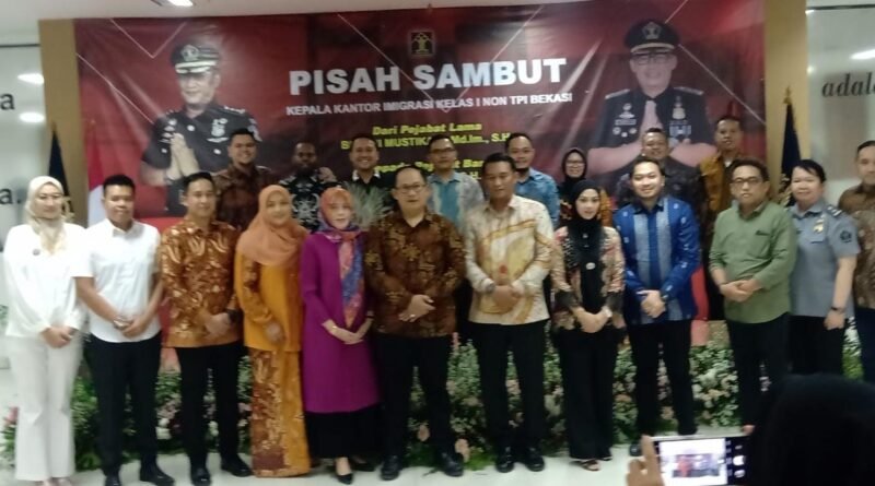 JAKARTA.GERBANGPATRIOT.COM – Kota Bekasi, Kepala Kantor Imigrasi (Kakanim) Kelas I Non TPI Bekasi yang lama, Berthi Mustika pisah sambut bersama Kakanim baru, Babay Baenullah di Aula Kanim Lantai 5, Teluk Pucung, Bekasi Utara, Senin (30/10/2023).