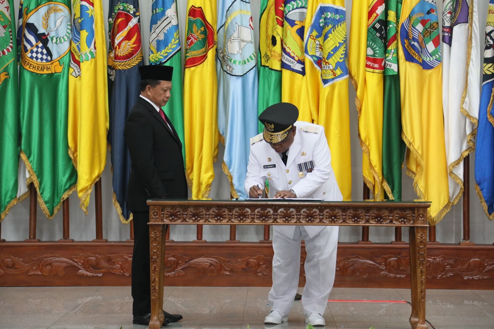 Ali Baham menggantikan Paulus Waterpauw yang telah berakhir masa tugasnya karena memasuki usia pensiun. Acara pelantikan ini berlangsung di Gedung Sasana Bhakti Praja (SBP) Kementerian Dalam Negeri (Kemendagri), Jakarta, Rabu (1/11/2023).