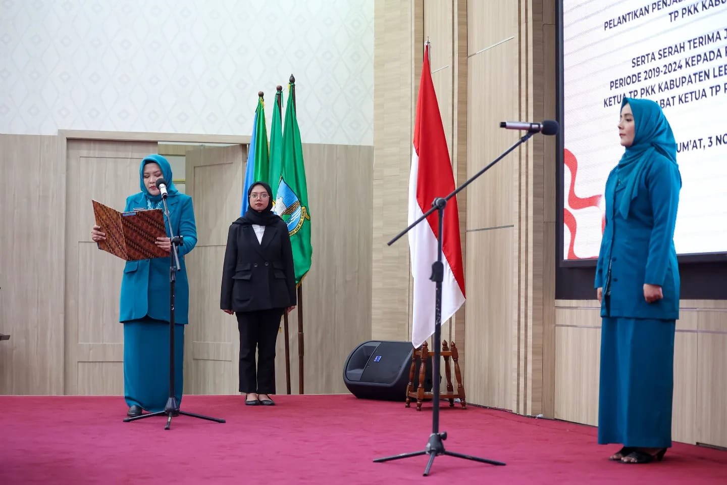 Pelantikan ini diawali dengan pembacaan Keputusan Pj Ketua TP PKK Provinsi Banten Tine Al Muktabar Nomor 31/Kep/PKK PROV/XI/2023 Tentang Pemberhentian Ketua TP PKK Kabupaten Lebak dan Menetapkan Penjabat (Pj) Ketua TP PKK Kabupaten Lebak.