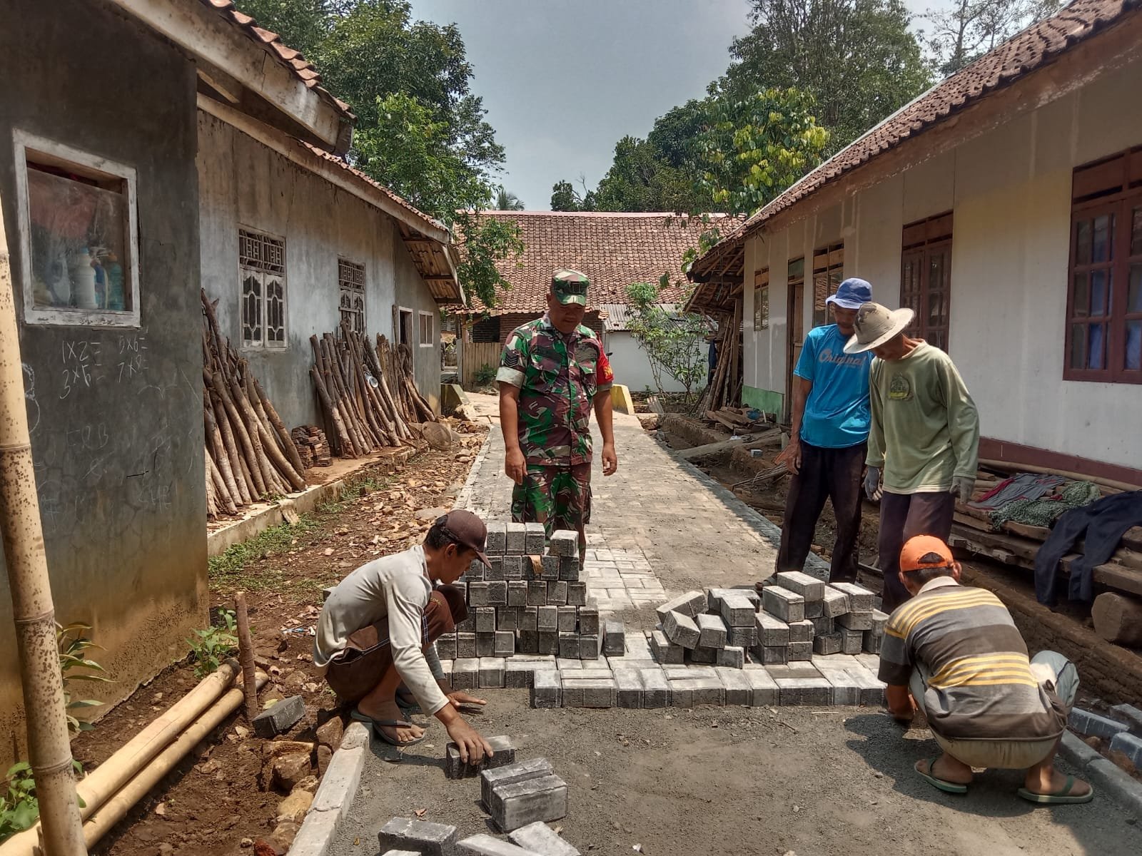 “ini sebagai wujud kemanunggalan TNI dengan rakyat dan diharapkan pengerjaan paving jalan ini cepat selesai serta segera bisa digunakan warga untuk beraktivitas sehari-hari,” ucap Serma Deni.
