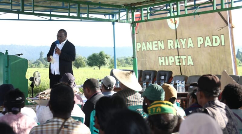 JAKARTA.GERBANGPATRIOT.COM – Nabire, Wakil Menteri Dalam Negeri (Wamendagri) John Wempi Wetipo mengapresiasi pelaksanaan panen raya padi oleh kelompok tani Hidup Petani Nyata (HIPETA) di Desa Satuan Pemukiman 1 (SP1) Distrik Nabire Barat, Kabupaten Nabire, Provinsi Papua Tengah, Rabu (8/11/2023). Wempi berharap hasil panen tersebut dapat berkontribusi terhadap upaya menjaga ketersediaan pangan di tingkat keluarga.