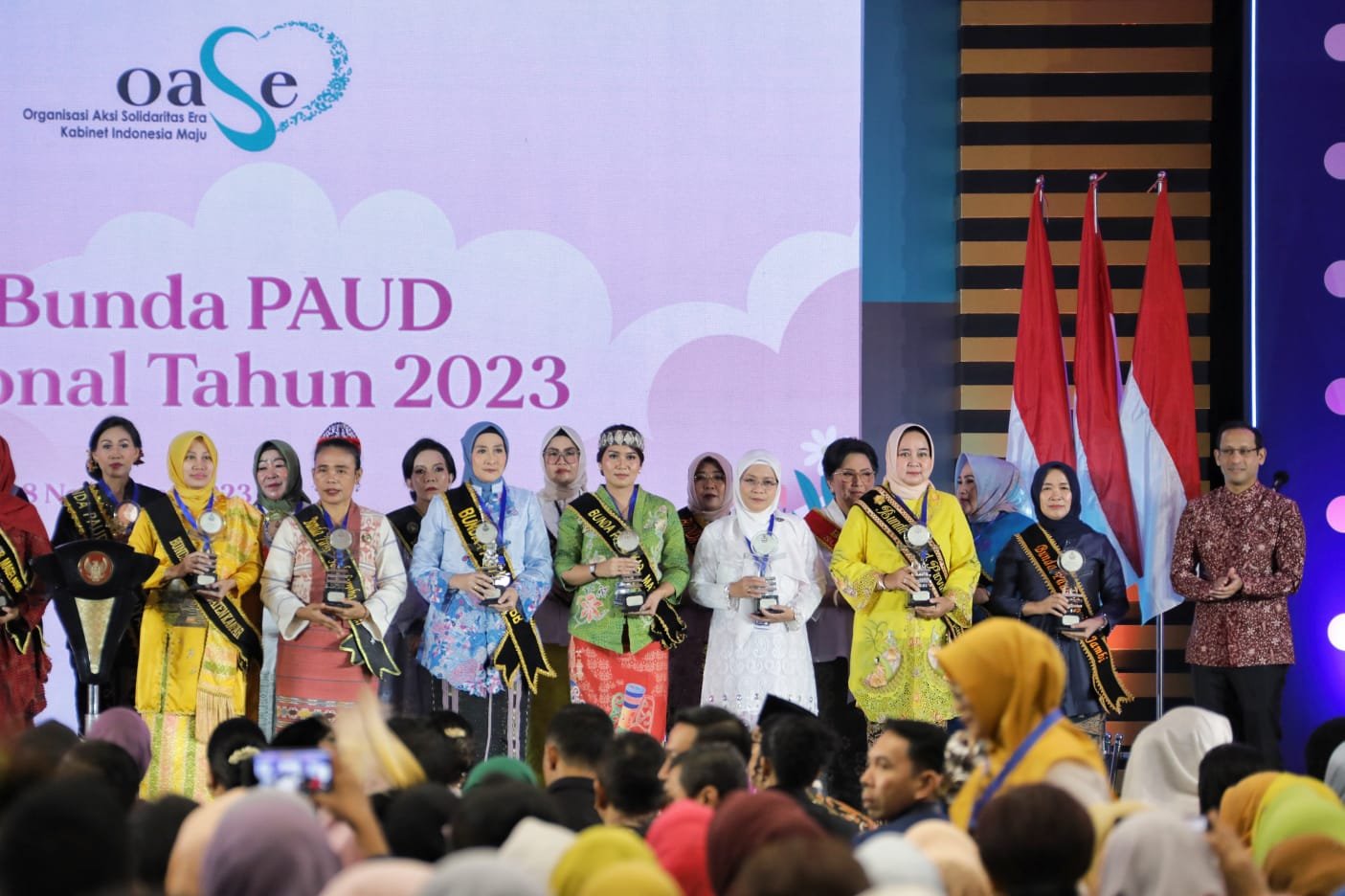Apresiasi Bunda PAUD Tingkat Nasional ini juga dihadiri Ibu Negara Iriana Joko Widodo dan Mendikbudristek Nadiem Anwar Makarim.