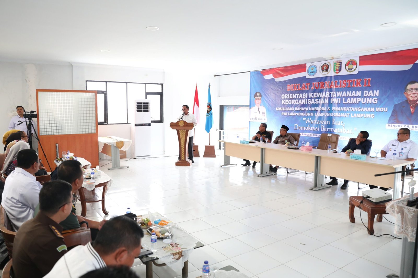 “Saya mengapresiasi dan menyambut baik diselenggarakannya kegiatan ini. Semoga seluruh peserta dapat betul-betul mengikuti sehingga mampu menjadi seorang wartawan yang mampu menjaga, menjalankan fungsi dan tugasnya dengan baik,” ujar Gubernur Arinal.