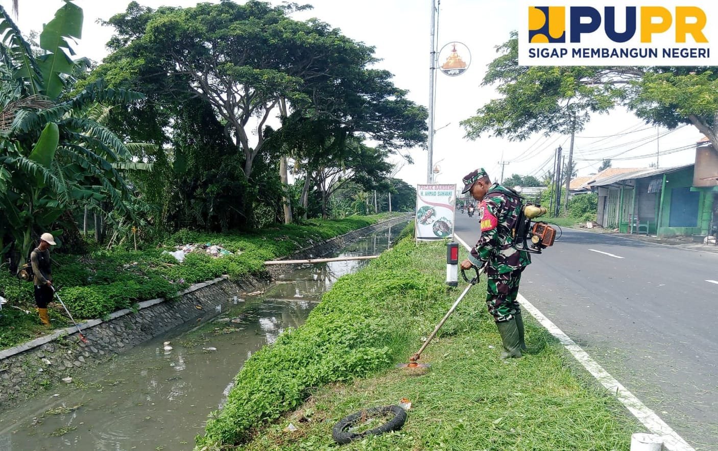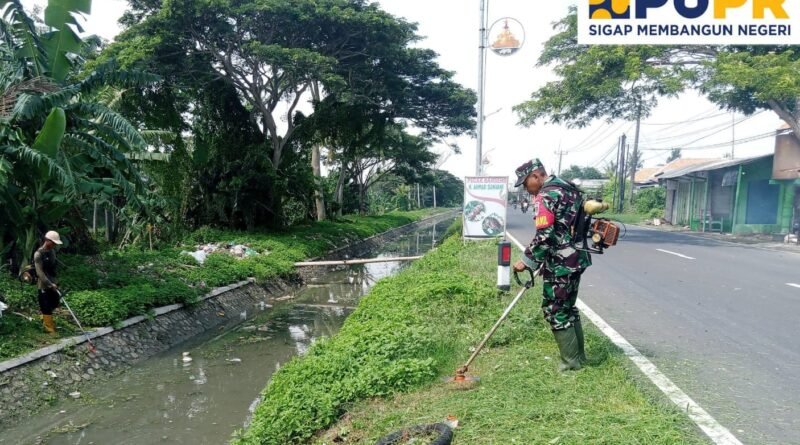 JAKARTA.GERBANGPATRIOT.COM- Serang, Tampak terlihat dari kejauhan seorang prajurit TNI, sedang melaksanakan kegiatan pembersihan jalan bersama petugas kebersihan, dari Dinas Pekerjaan Umum Dan Perumahan Rakyat (PUPR), yang berada disepanjang aliran sungai yang terletak di wilayah Kecamatan Tirtayasa Kabupaten Serang Provinsi Banten, Selasa (05/12/2023).