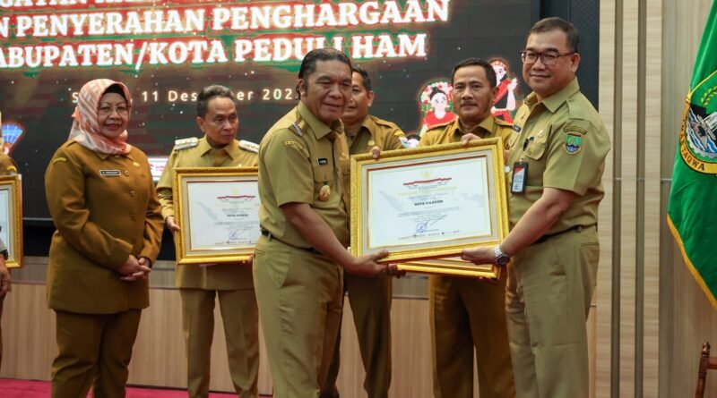 JAKARTA.GERBANGPATRIOT.COM – Banten, Penjabat (Pj) Gubernur Banten Al Muktabar menyerahkan Penghargaan Kabupaten/ Kota Peduli HAM kepada Bupati/Walikota se-Provinsi Banten. Tahun ini, delapan (8) Kabupaten/Kota di Provinsi Banten mendapatkan Penghargaan Kabupaten/ Kota Peduli HAM.