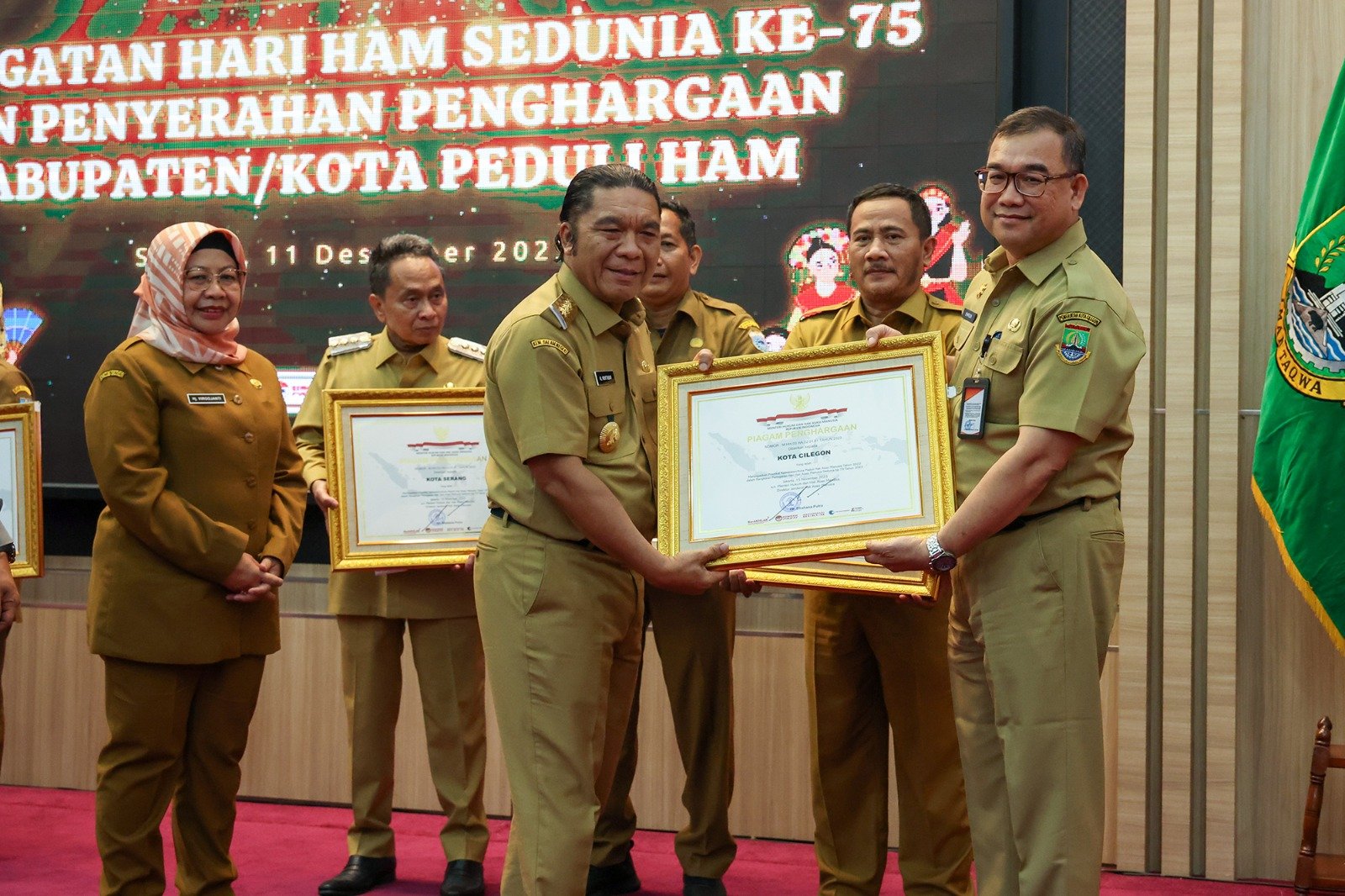 “Selamat atas segala prestasi yang dicapai. Pencapaian-pencapaian yang kita dapat ini hasil kerjasama kita semua,” ungkap Al Muktabar saat memberikan sambutan pada Peringatan Hari HAM se-Dunia ke-75 dan Penyerahan Penghargaan Kabupaten/ Kota Peduli HAM di Pendopo Gubernur Banten, Senin (11/12/2023).