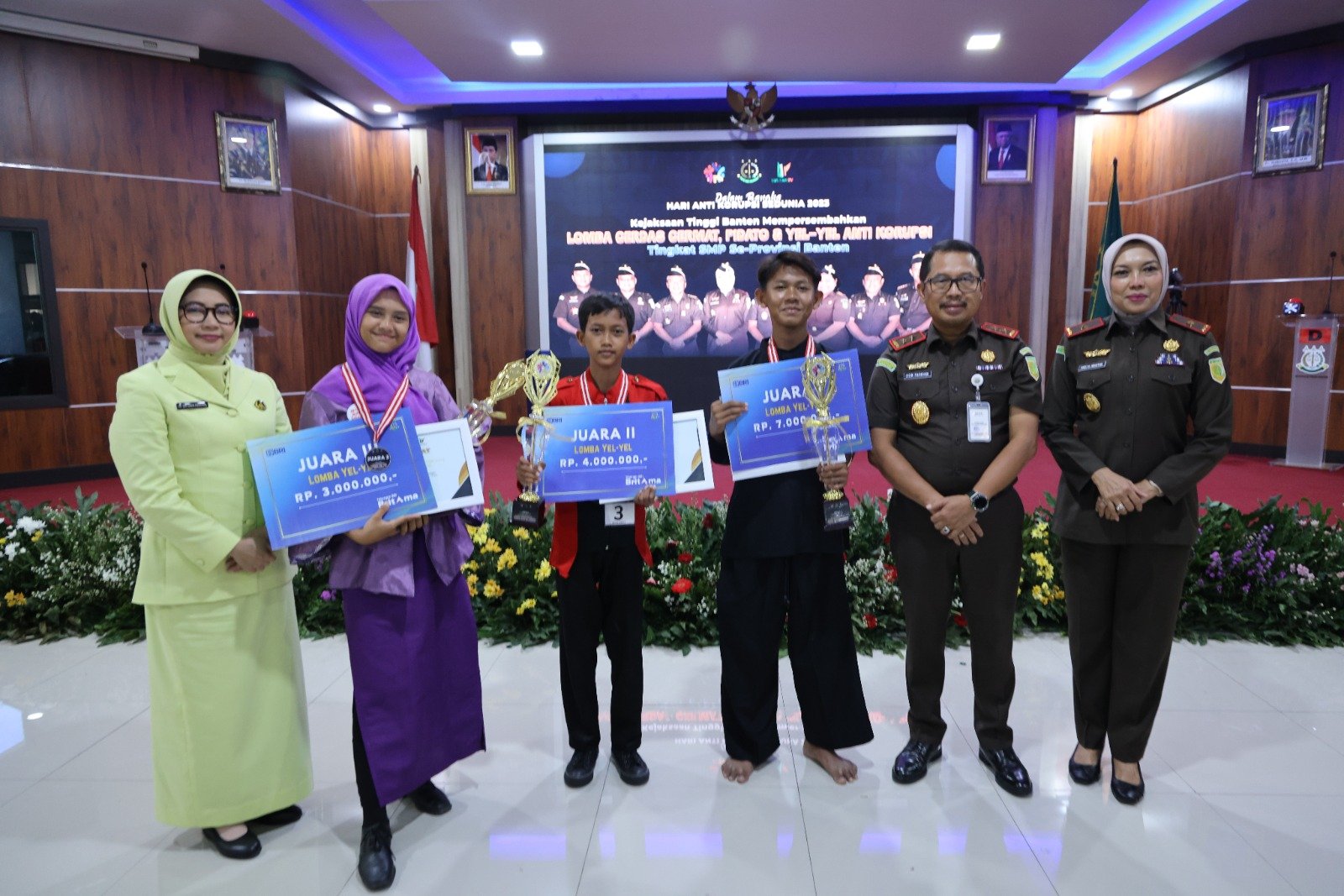 Lebih lanjut, Kajati Banten menyampaikan dipilihnya peserta perlombaan pada tingkat SMP di Hari Antikorupsi Sedunia yang diperingati tanggal 9 Desember ini diharapkan dapat membentuk jiwa antikorupsi sejak dini.