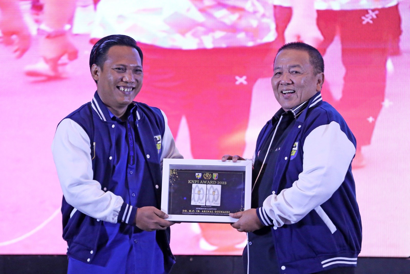 Penghargaan itu diterima Gubernur saat Temu Kangen Pemuda Lintas Generasi dan KNPI Award dalam rangka Memperingati HUT Emas 50 Tahun KNPI “Merajut Persatuan Songsong Indonesia Emas 2045” di Ballroom Hotel Novotel Bandar Lampung, Sabtu (23/12/2023).