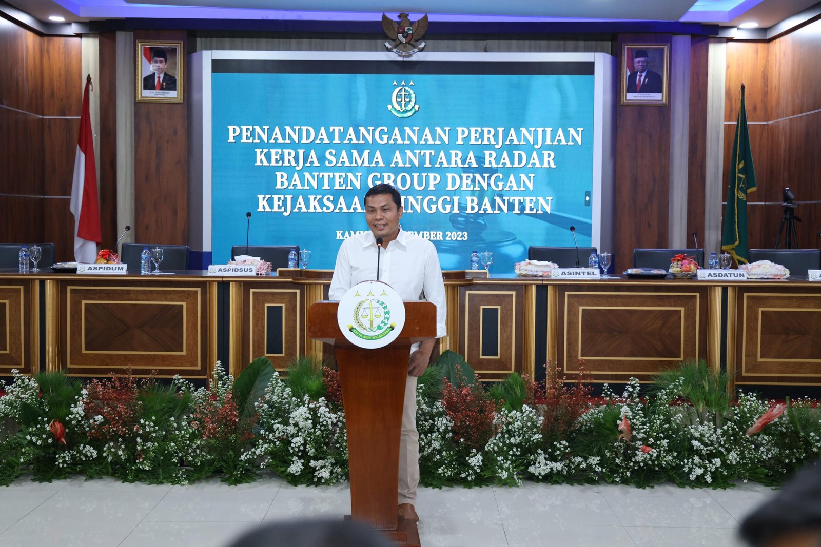 JAKARTA.GERBANGPATRIOT.COM – Serang, telah dilaksanakan Penandatangan Perjanjian Kerja Sama antara Kejaksaan Tinggi Banten dengan Radar Banten Group tentang Penyampaian Informasi bertempat di Aula Kejaksaan Tinggi Banten.(28/12/2023)
