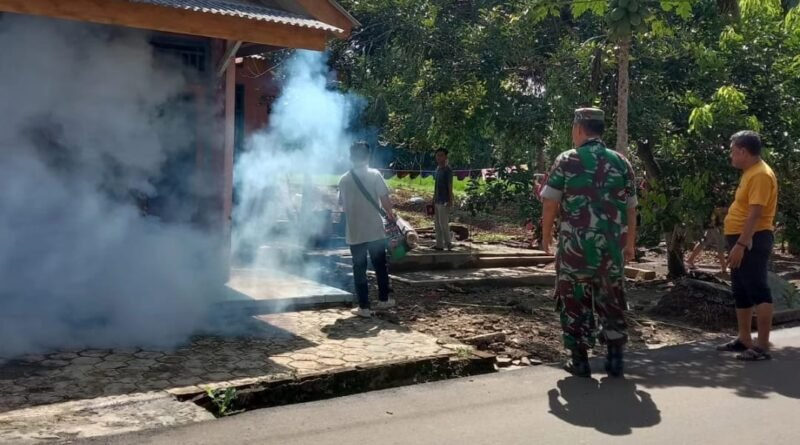 Maraknya Kasus DBD, Koramil 0106/Menes Bersama Petugas Kesehatan, Lakukan Fogging