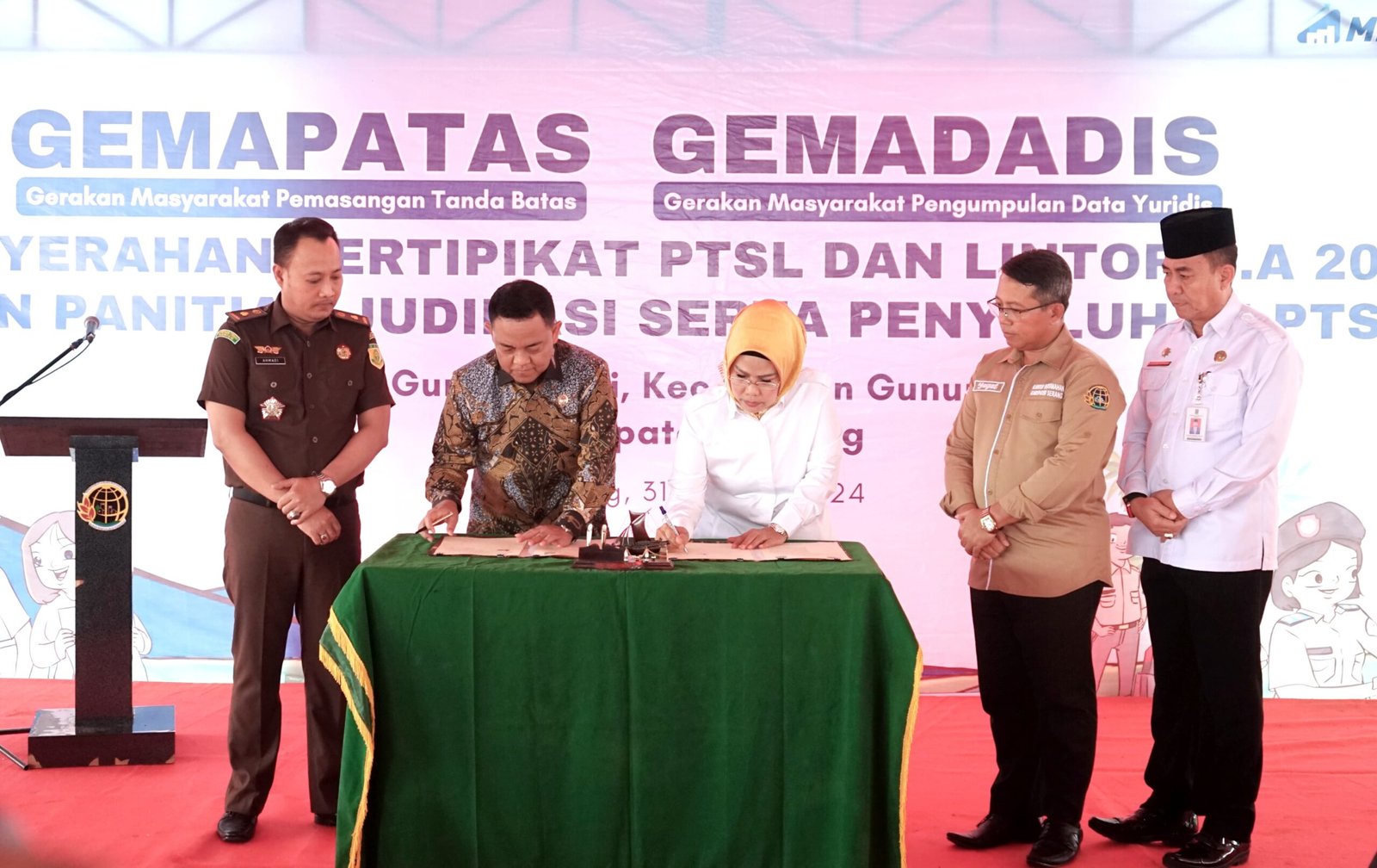 Komitmen tersebut disampaikan Ratu Tatu saat pencanangan Gerakan Masyarakat Pemasangan Tanda Batas (Gemapatas), Gerakan Masyarakat Pengumpulan Data Yuridis (Gemadadis), serta Penyerahan Sertifikat PTSL dan Lintor Tahun 2024 di Lapangan Kampung Cipayung, Desa Gunungsari, Kecamatan Gunungsari, Rabu (31/01/2024).