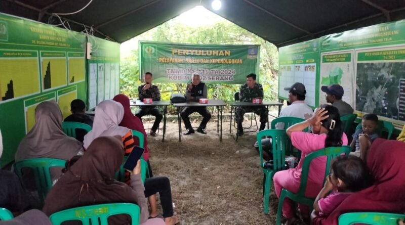 JAKARTA.GERBANGPATRIOT.COM – Serang, Menjadi sasaran non Fisik, TNI Manunggal Membangun Desa (TMMD) Ke-119 Kodim 0602/Serang, menggandeng Pemerintah Daerah Kabupaten (Pemkab) Serang memalui instansi terkait, menggelar kegiatan Penyuluhan Publik dan Kependudukan yang diikuti oleh masyarakat, bertempat di Desa Bojong Pandan Kabupaten Serang, Provinsi Banten, Kamis (29/02/2024).